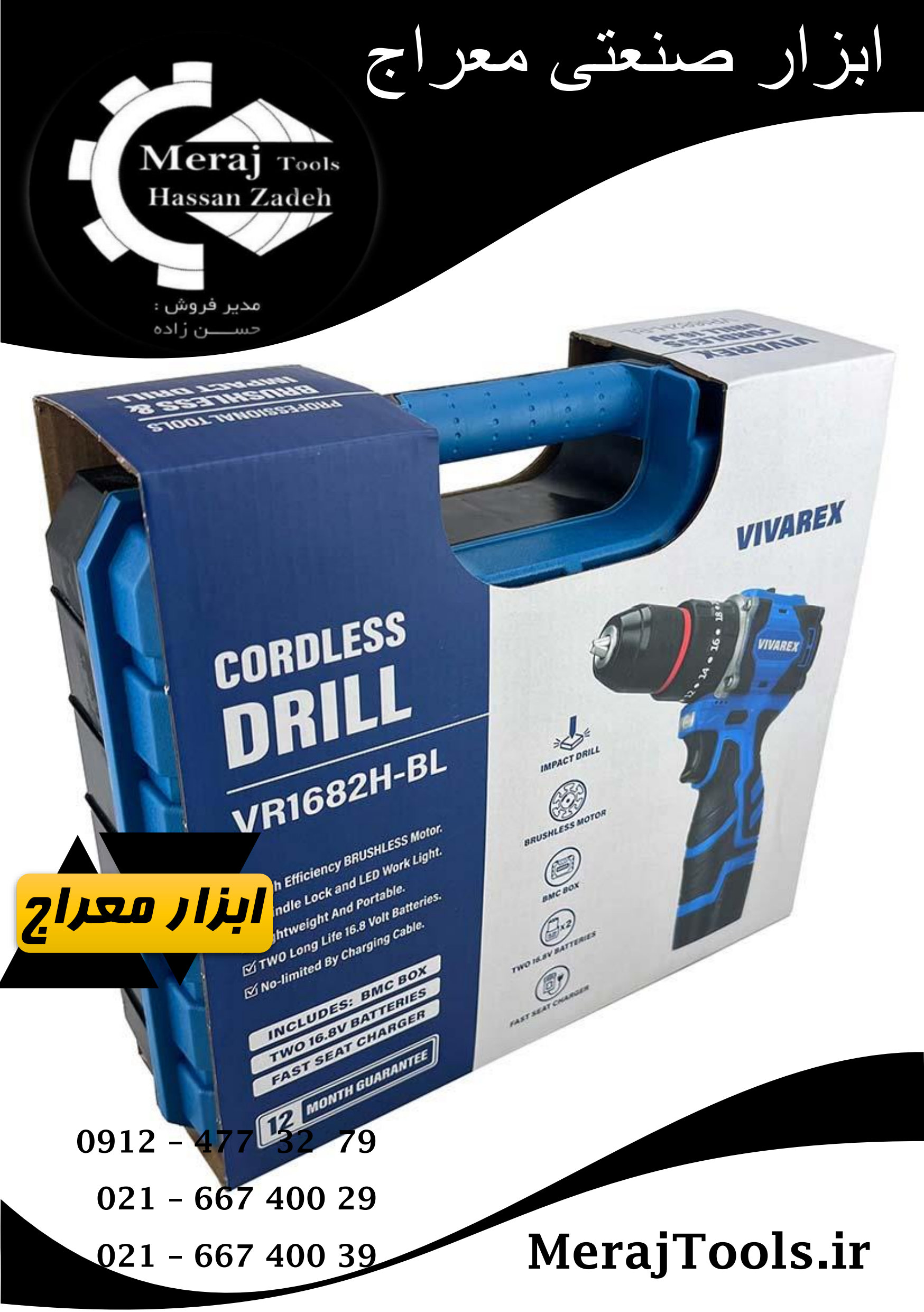 دو عدد باتری 16.8 ولت/ شارژر خشابی/ کارت گارانتی/ دفترچه راهنمای فارسی
