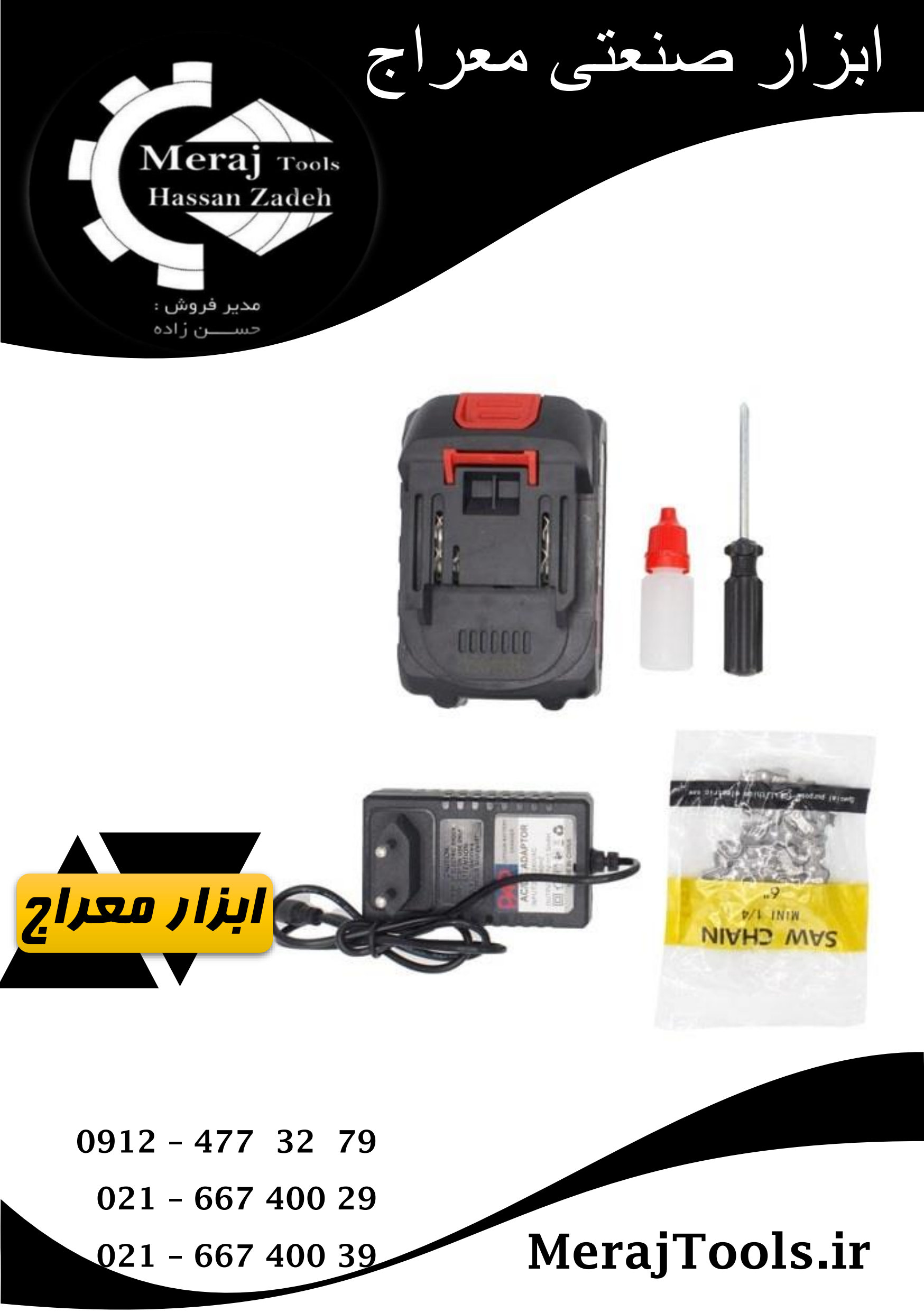 دو عدد باتری - شارژر - زنجیر یدک - پیچ گوشتی - روغندان - کیف BMC