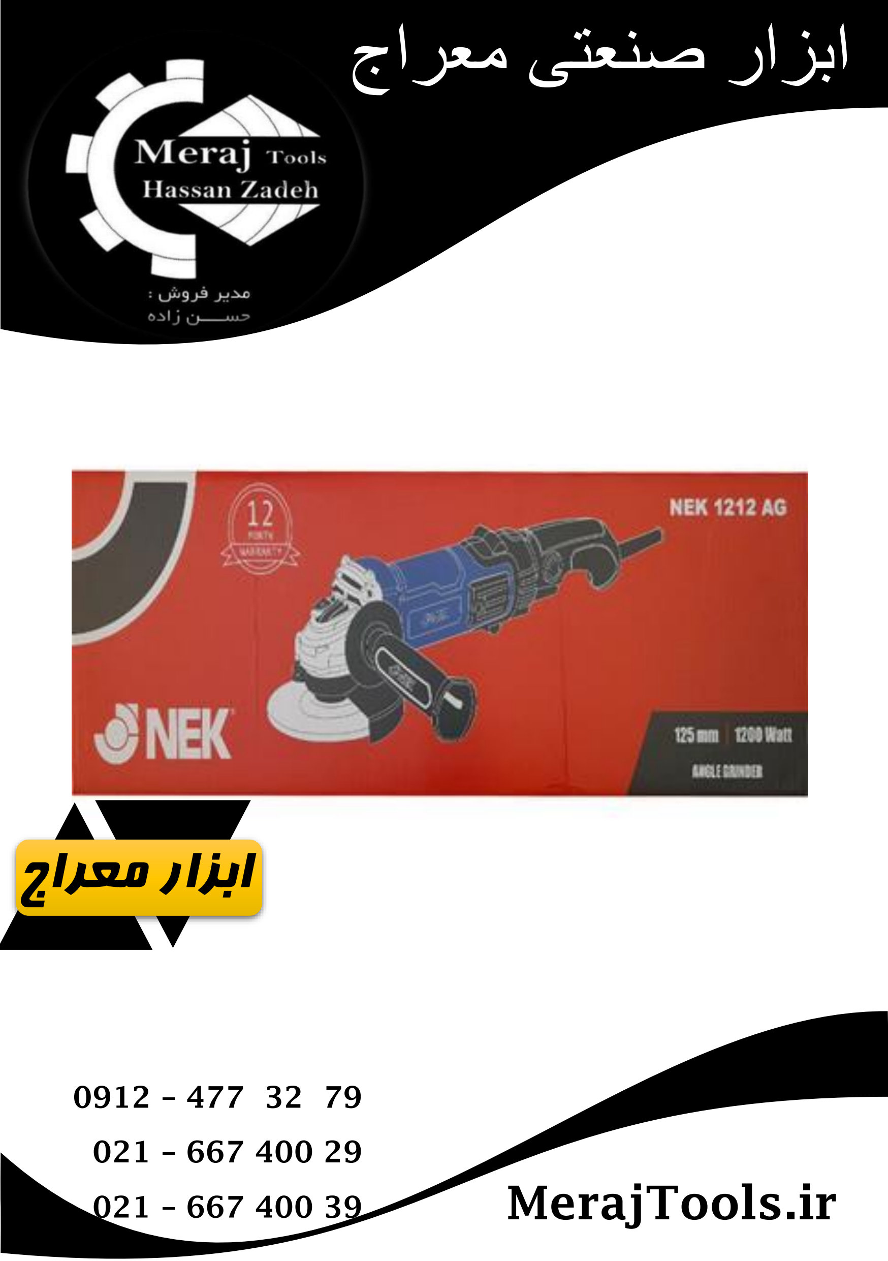مینی فرز دسته بلند دیمردار نک 1200 وات مدل NEK 1212 AG
