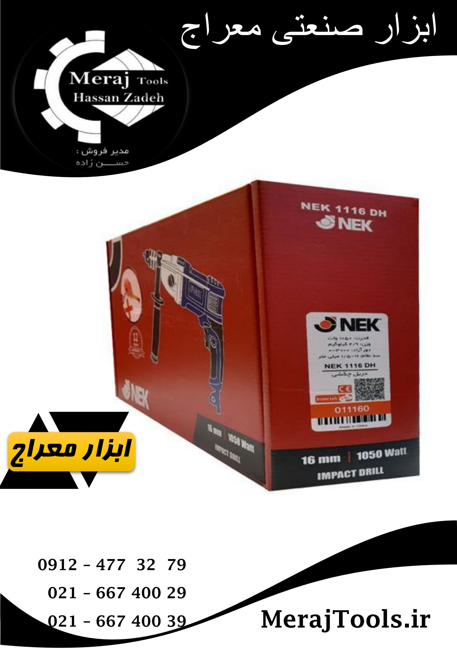 دریل چکشی گیربکسی نک 16 میلیمتر مدل NEK 1116 DH